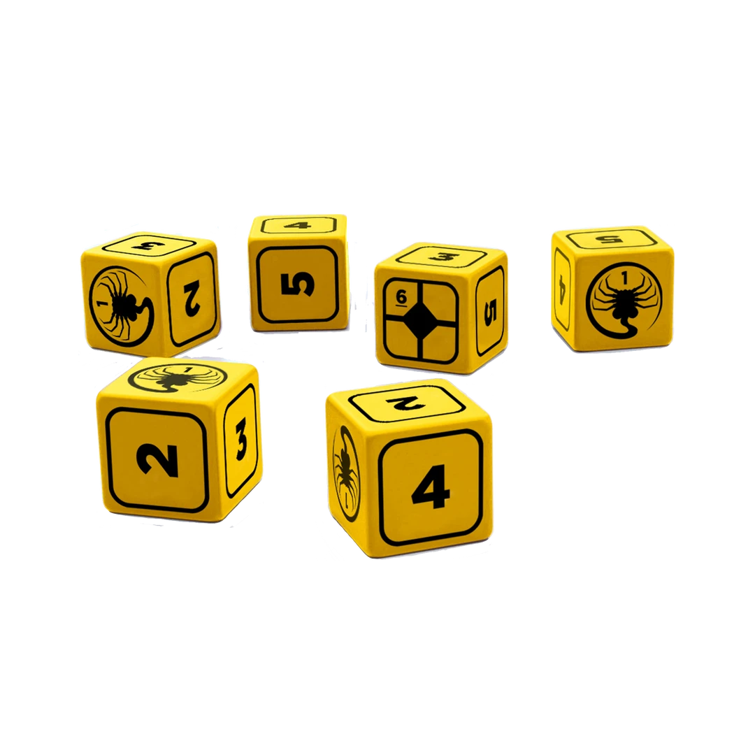 A set of ten engraved Stress Dice, designed specifically for the ALIEN Roleplaying Game. These 16 mm special dice are designed to support the game mechanics but can be used as normal six-sided dice as well.