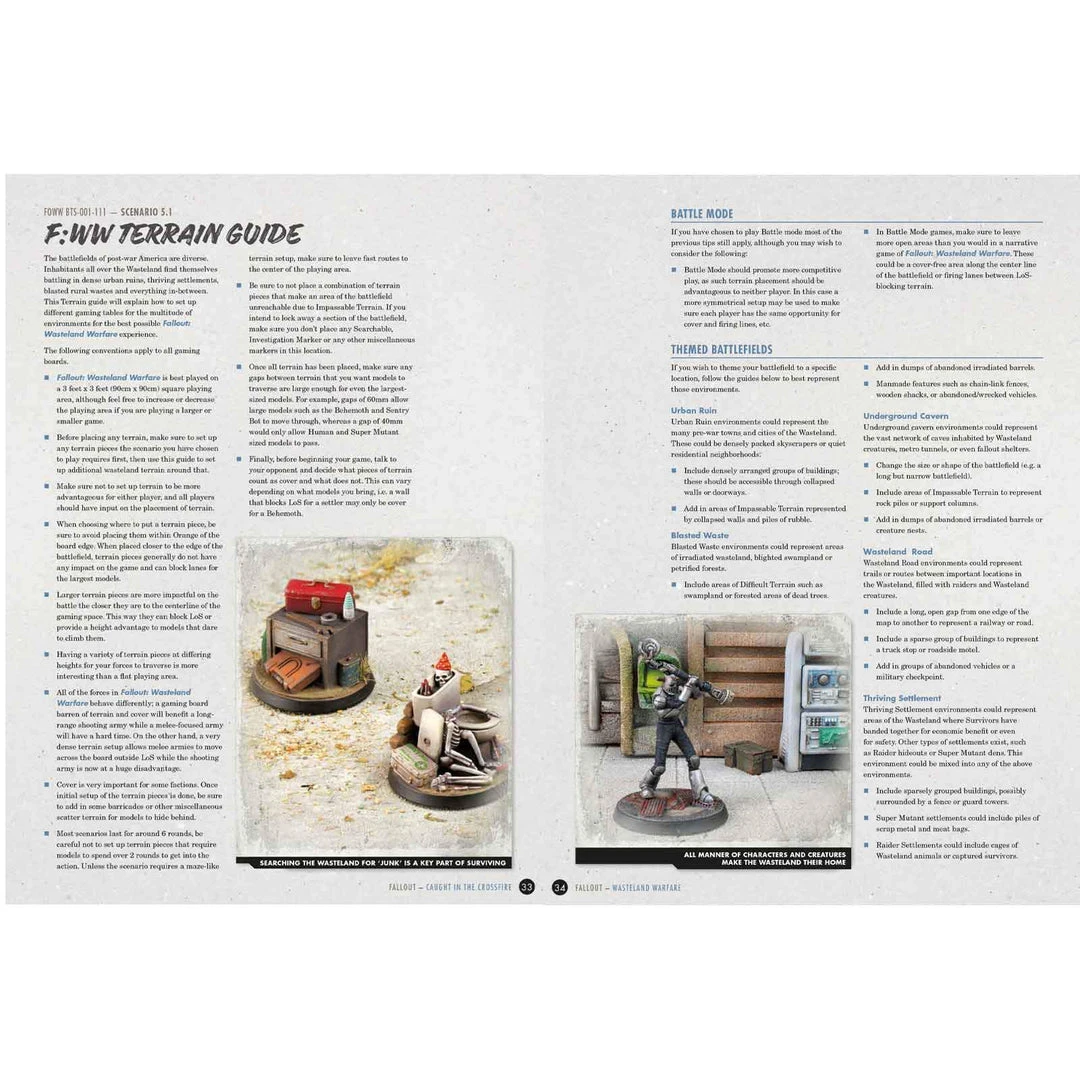 Things are changing in the wasteland. Heavy weapons are being brought to bear, factions are clashing over military installations, and below ground a desperate action is being taken in a struggle to survive. Creaking factories are raided for scrap, leaking tankers stage running gun battles, and Pre-war weapons and contraptions are hastily patched up. There’s a storm coming, the whole wasteland can feel it. Will you be ready when it arrives…or will you be Caught in the Crossfire?
