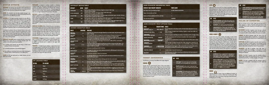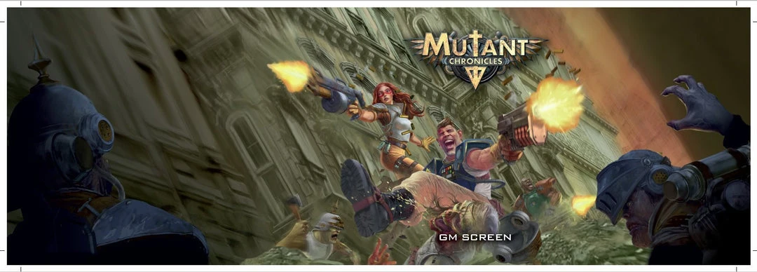 The official Mutant Chronicles Gamesmaster Screen is a high quality four panel gatefold GM screen to help power your Mutant Chronicles adventures. The exterior features beautiful full colour Mutant Chronicles artwork, and the inside cover contains useful tables and charts like combat momentum and critical injury to put all the important information at GM’s fingertips, while keeping their secrets safe from the eyes of inquisitive players.
