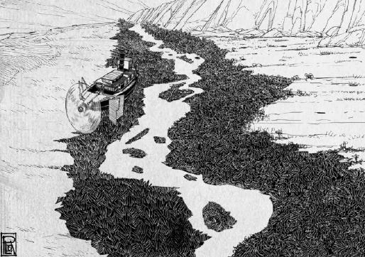 While the few human settlements and bases were all established along the World River, the main focus of the great powers and trading comÂpanies remains on the hostile areas of Mercury—because that is where the true riches of the innermost planet of the Solar System lie. Lakes of molten metal await their exploitation on the Hot Side, if only there were a way to mine them. Frozen gases on the Dark Side also promise great profits, despite all risks to life and limb. It is no wonder then that it’s not just scientists that come to Mercury, but also salesmen and prospectors, just as some inventors try to construct machines that would function in environÂments more life-threatening and hostile than anything known on Earth.