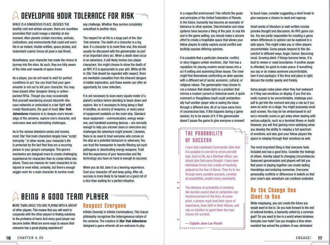 - A wealth of new character options, including new non-Starfleet character roles, more than 40 new talents, additional details on existing character roles and insights into using the game mechanics gleaned from 4 years of feedback and development.
